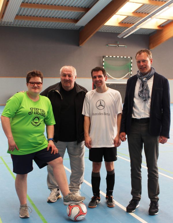 Zwei Mannschaften mehr als im Vorjahr konnte das sechste Integrative Fußballturnier verzeichnen. Mit zehn Teams und rund 100 Teilnehmern stand das inklusive Sport-Event unter hervorragenden Vorzeichen. In der Oberboihinger Ballspielhalle bei der Kirchrainschule stießen Ende März Bürgermeister Torsten Hooge und der ehemalige Prominentenkicker und Pate der BFL Johann „Buffy“ Ettmayer zum Auftaktspiel an.