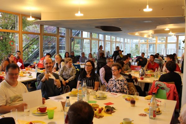 Am Dienstag den 22.10.2019 feierten die Offenen Hilfen ihr 20- jähriges Jubiläum in der Werkstatt in Oberboihingen. Es wurden alle aktuellen Teilnehmer der Gruppen und Übungsleiter, sowie einige Gäste eingeladen. Stellvertretende Geschäftsführerin der BFL Ramona Koch- Ludwig eröffnete das Fest mit einer Rede und bedankte sich bei den Mitarbeiterinnen Dorothee Binder, Uschi Abt, Fee Zeitler und Rassin Loos für ihr Engagement und ihre Tätigkeit bei den Offenen Hilfen. Die Gruppe der Tagesfreizeit lockerte durch eine Yogaeinheit die Gäste auf, damit kurze Zeit später das Kuchenbuffet geplündert werden konnte. Während manche noch die letzten Bissen ihres Kuchens genüsslich aßen, spielte Paul mit Begleitung seiner Lehrerin Tenorblockflöte. Beim nächsten Programmpunkt „Wer ist es?“ mussten die Gäste raten wer sich hinter den Bildern versteckt. Anschließend wurden 6 Teilnehmer für 20 Jahre geehrt und weitere 26 erhielten ebenfalls eine Urkunde für eine langjährige Teilnahme an den Programmen der Offenen Hilfen. Nach einer kurzen Pause folgte eine Bilderpräsentation mit Bildern der letzten 20 Jahre. Viele erkannten sich selbst und auch andere Teilnehmer wieder und hatten daran eine große Freude. Die Stimmung war das ganze Fest über sehr heiter und somit machte das Quiz „1, 2 oder 3?“noch mehr Spaß! Zum Ausklang gab es noch Musik und Schwatz und nach und nach leerte sich der Raum und wir schauten auf einen gelungenen Abend zurück.
