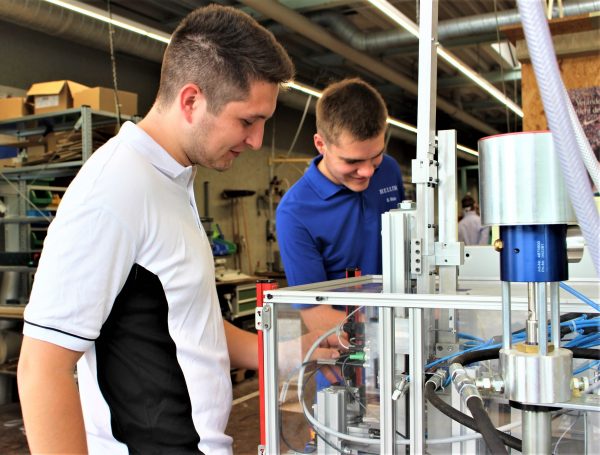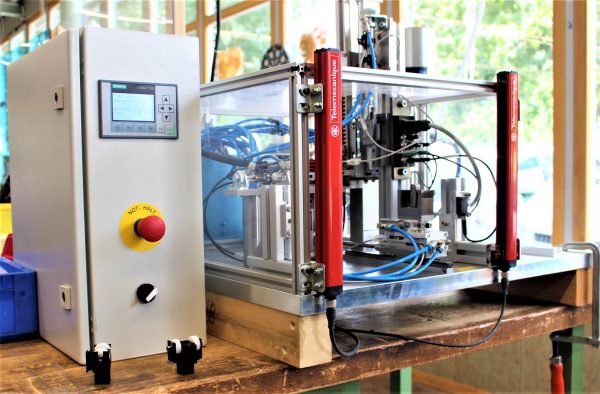 Die sich im dritten Ausbildungsjahr befindenden Lukas Gienger (Industriemechaniker) und Steffen Maier (Mechatroniker) erinnerten sich an den Projektstart sowie -ablauf: „Wir hatten die Maschine Anfang des Jahres abgeholt und in unsere Werkstatt transportiert. Dort versammelten wir Auszubildenden uns zunächst und analysierten die Maschine mechanisch und elektrisch. In der Folge erarbeiteten wir eine Zusammenfassung inklusive Optimierungs- und Erneuerungsbedarf. Dann wurden zunächst Skizzen und Zeichnungen erstellt, bevor die notwendigen Teile zerspant wurden. Gleichzeitig wurde das Programm der Maschine optimiert.“ Die interdisziplinäre Teamarbeit war ein wesentlicher Bestandteil des Projekts. Da sind sich alle einig. „Gerade die Zusammenarbeit der unterschiedlichen Berufsgruppen ist interessant“, betont Simon Kluge. So waren angehende technische Produktdesigner, Mechatroniker, Industriemechaniker und Zerspaner beteiligt.