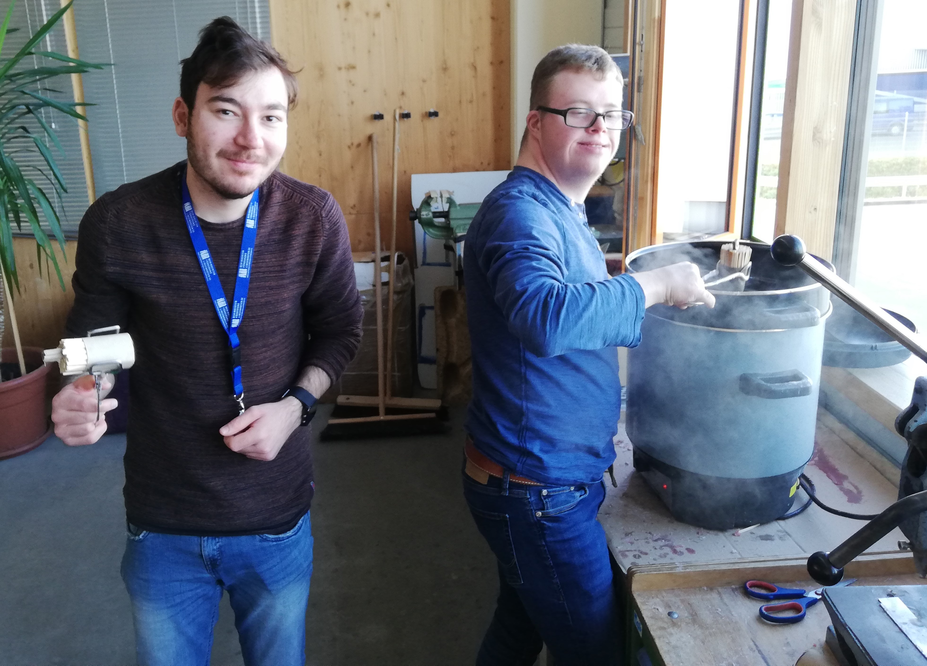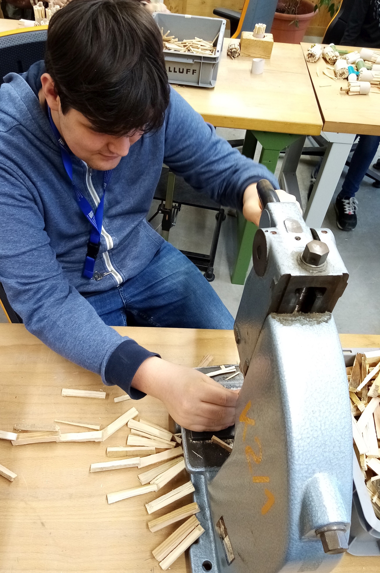 Das aktuelle Kooperationsprojekt zwischen unserer AB+-Werkstattgruppe und dem Berufsbildungsbereich lautet: „Erhaltet die Schbächela am Leben!“ In den vergangenen Monaten ist die Produktion hochgefahren worden, da das Weihnachtsgeschäft naht. Die Arbeitsschritte wurden professionalisiert und die Verpackungen aktualisiert (neue Logos auf den Kartons!).