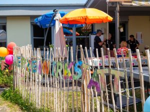 Auf dem Grill türmten sich bereits knackige Würste und frisches Fleisch, Falafel und Grillkäse – die Getränke standen gekühlt bereit. Somit verköstigten wir mit einem bunten und leckeren Schmaus viele Besucher*innen und Freunde von Leben inklusiv e.V. Ab 13Uhr fanden Führungen durch die Einrichtung statt – dort bekam man allerlei Fakten und interessante Informationen zu den unterschiedlichen Tätigkeitsbereichen. Im Förder- und Betreuungsbereich lockte ein köstlicher Duft – es gab frische Waffeln, kühle Obstbecher und Eis sowie ein Kreativangebot – es konnten in einer Kerzenwerkstatt eigene Kerzen verschönert werden.