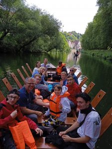 Ende Juli stand für die Mädels und Jungs, die im Jahr 2022 im Berufsbildungsbereich begonnen hatten, der diesjährige Ausflug nach Tübingen zum Stocherkahnfahren auf dem Programm. Gut gestärkt nach einem tollen Frühstück, dass uns das Mensateam hergerichtet hatte, machte sich das Team auf den Weg nach Tübingen. In der Universitätsstadt angekommen, machten wir uns auf den Weg zur Anlegestelle. Hier erwarteten uns zwei erfahrene Guides, die uns sicher auf dem Neckar manövrierten. Es war eine kurzweilige Bootsfahrt, die allen sehr viel Spaß bereitet hat. Nach der Fahrt stärkten wir uns noch in der schönen Fußgängerzone von Tübingen mit einem Eis, bevor wir die Heimfahrt antraten. In Frickenhausen angekommen, rundete das Grillbuffet unseres Küchenteams den gelungenen Tag vollends ab.