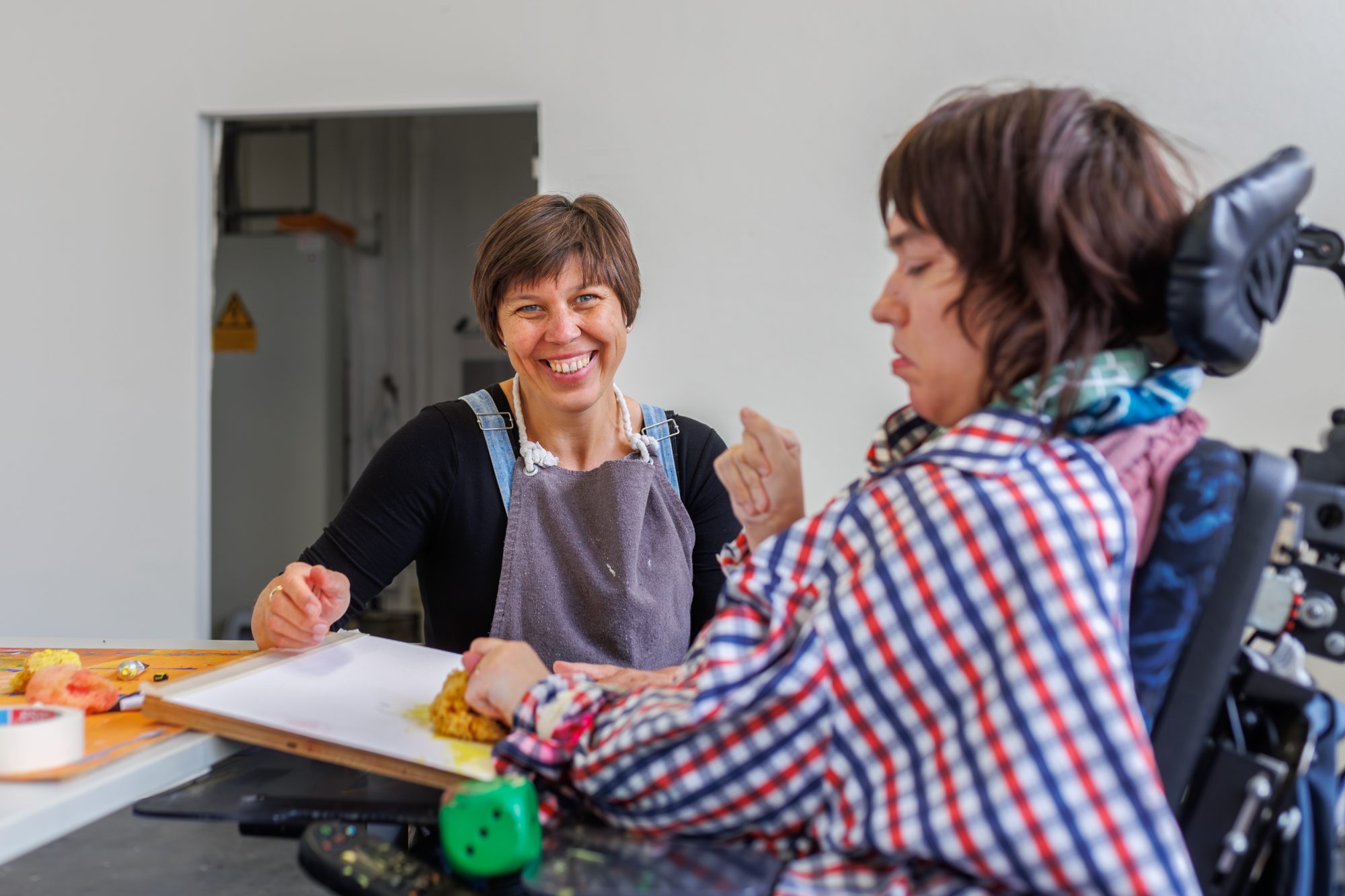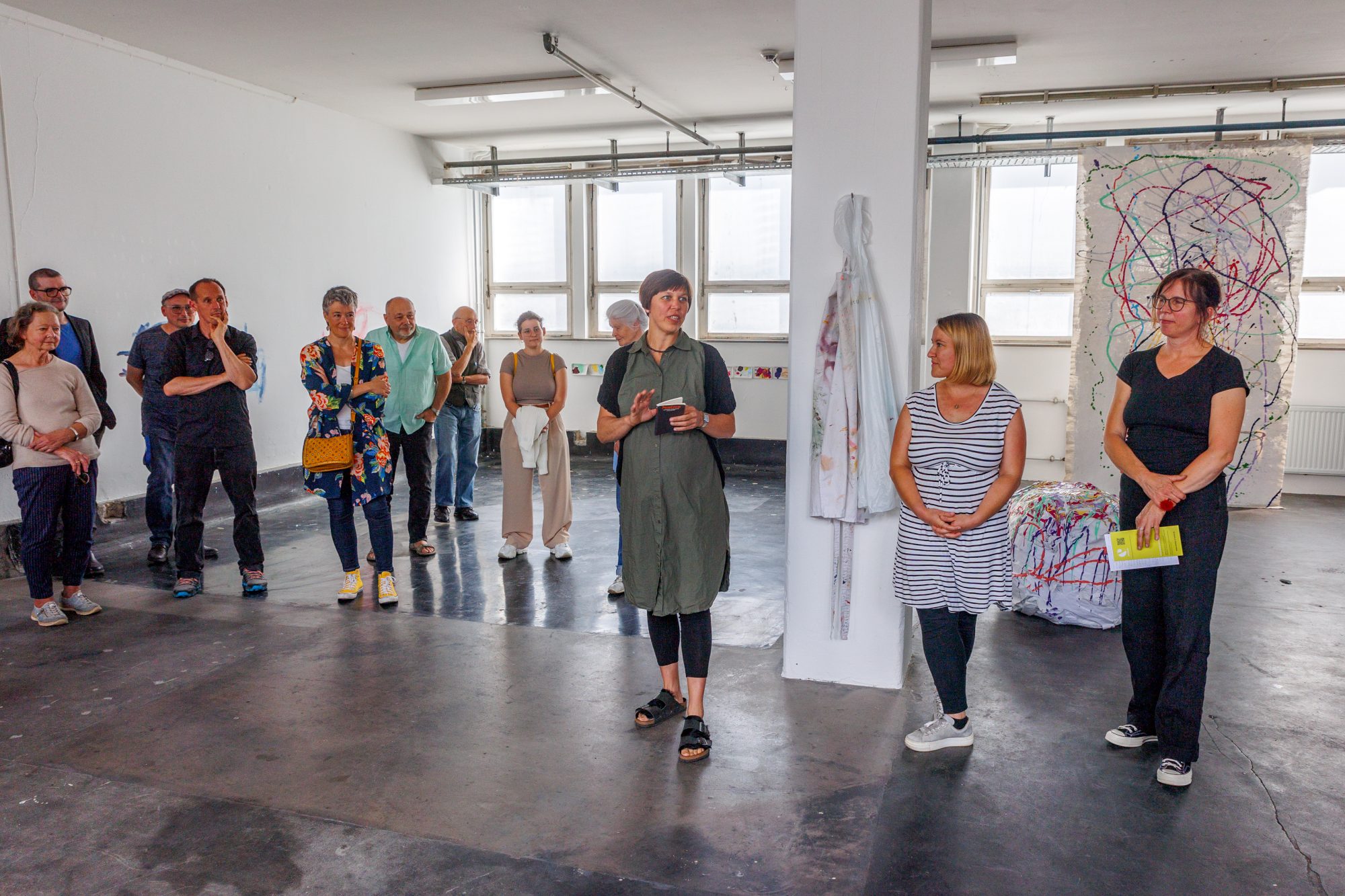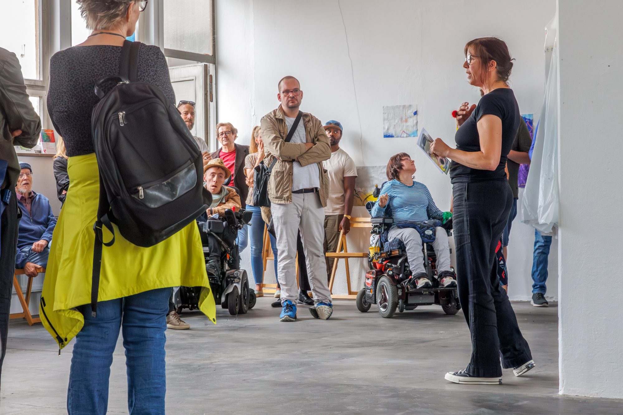Von Juni bis Juli fand in Nürtingen das Coming in! Festival für Outsider Art statt. Outsider Art nennt man Kunst, die außerhalb der akademischen Kunstwelt z.B. von Menschen mit Behinderungen oder psychischen Beeinträchtigungen geschaffen wurde. Wir haben uns hieran mit einer eigenen Kunstaktion unter Anleitung von Carla Mausch zusammen mit Josephine Bonnet beteiligt. Hierzu verwandelten die beiden der Bildende Künstlerin den Kunstverein Nürtingen in ein temporäres Atelier. In Form eines Art Camps konnten so Künstlerinnen und Künstler von Leben inklusiv e.V. vor Ort ihre Arbeiten entwickeln und gemeinsam in eine Ausstellung umsetzen. Bei einer festlichen Vernissage hatten die zahlreichen Besuchenden nicht nur Gelegenheit die Kunstwerke zu bestaunen, sondern auch die kreativen Menschen von Leben inklusiv kennenzulernen.