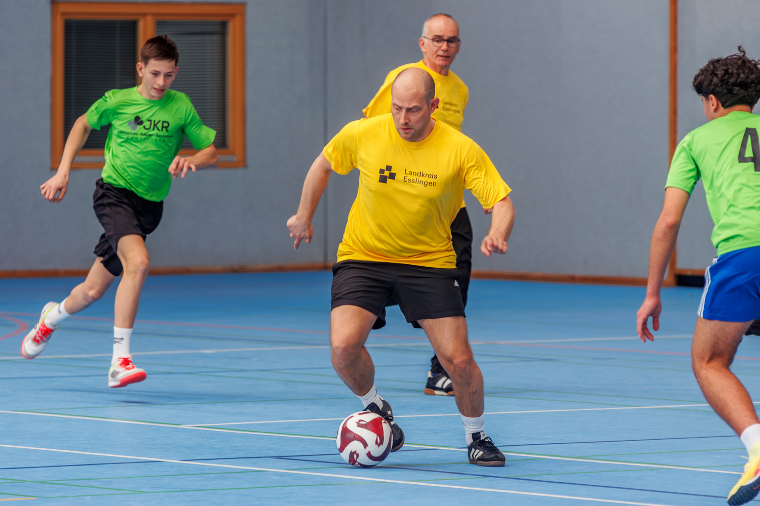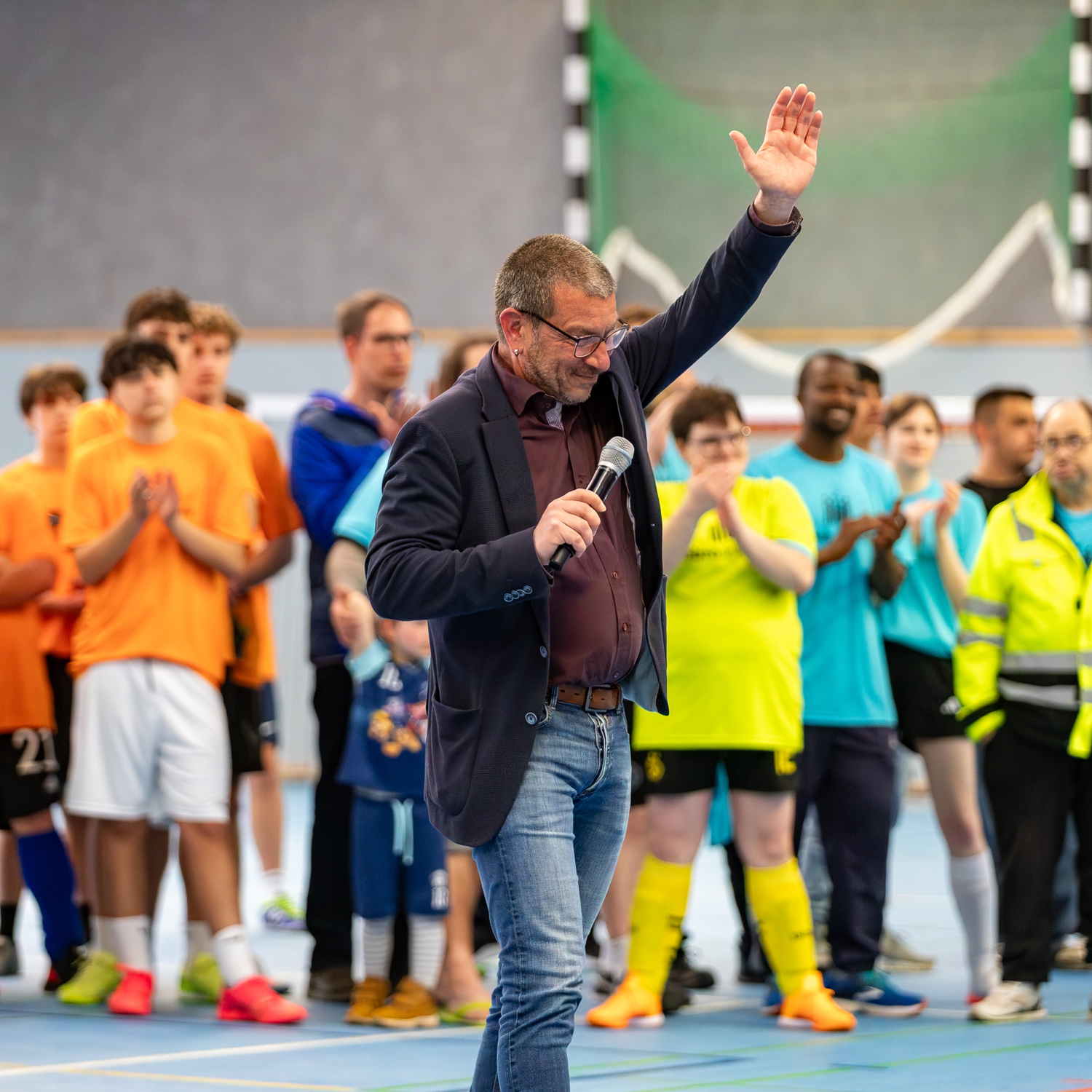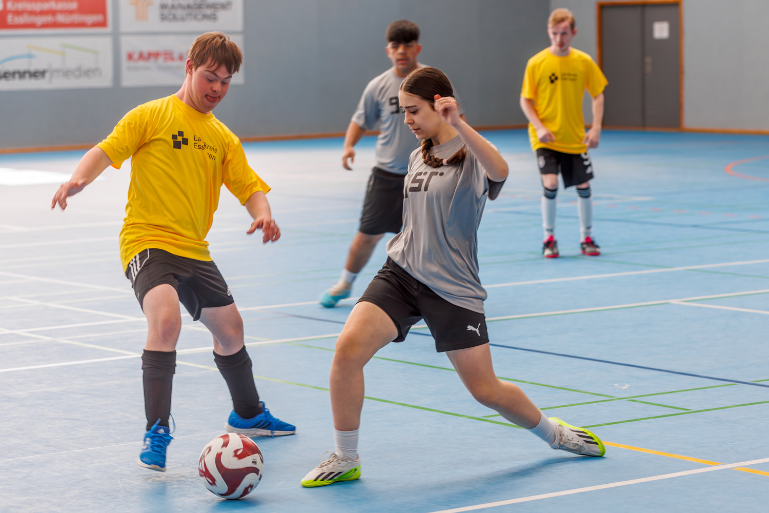OBERBOIHINGEN: Zehn gemischte Teams aus Unternehmen, Schulen und sozialen Einrichtungen der Region waren gegeneinander angetreten. Menschen mit und ohne Beeinträchtigung standen dabei Seite an Seite auf dem Feld – genau das, was den besonderen Charakter des Turniers seit Jahren ausmacht. Für ein echtes Highlight gleich zu Beginn sorgte der Esslinger Landrat Marcel Musolf, der als Schirmherr selbst die Hallenschuhe schnürte und im Eröffnungsspiel für das Team des Landratsamts Esslingen auflief. „Es ist nicht selbstverständlich, dass sich ein Landrat so aktiv einbringt und mitten ins Spielgeschehen geht“, betonte Katharina Ramsperger von Leben inklusiv e.V. als Organisatorin des Turniers. „Landrat Musolf hat nicht nur Präsenz gezeigt, sondern echten Einsatz!“