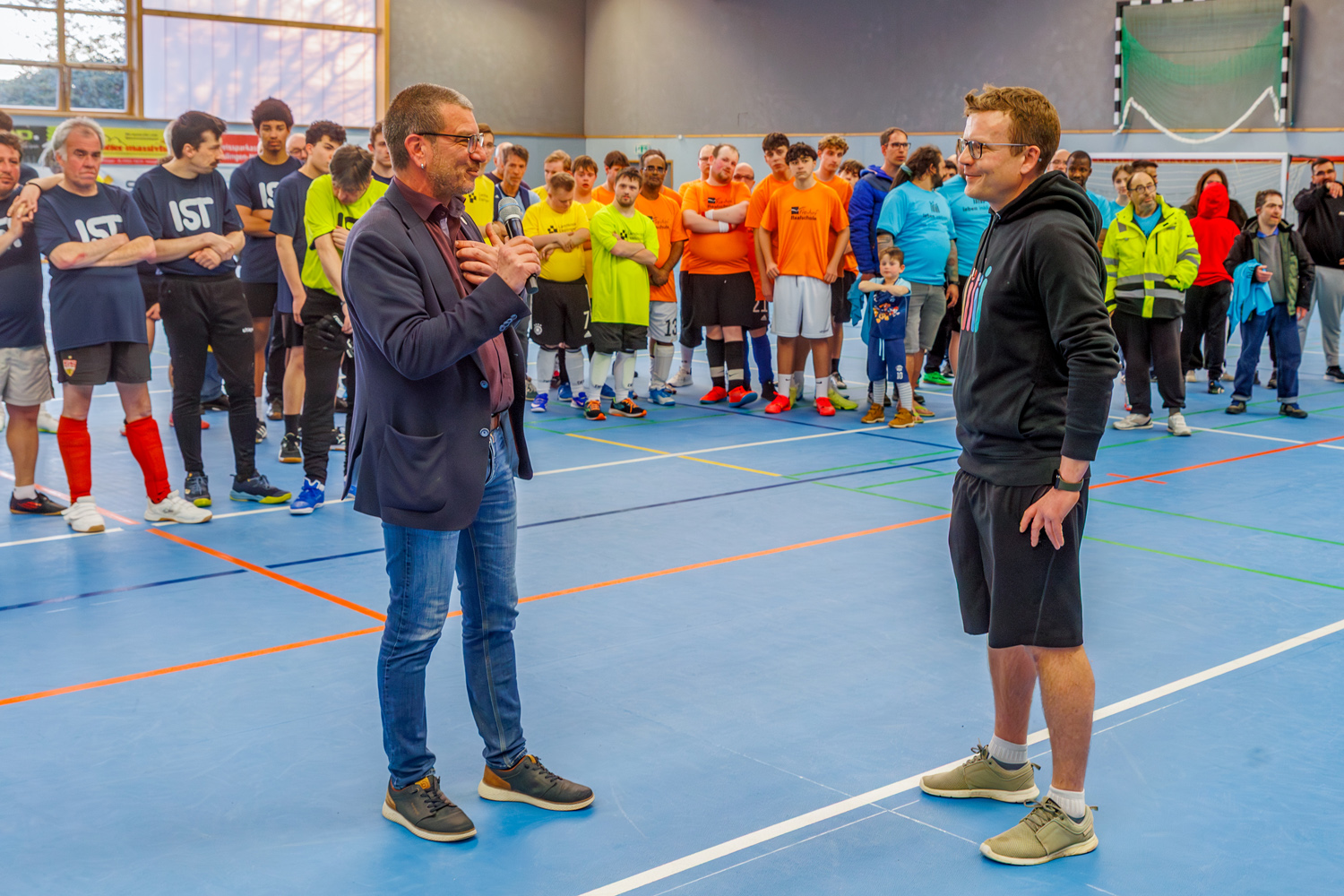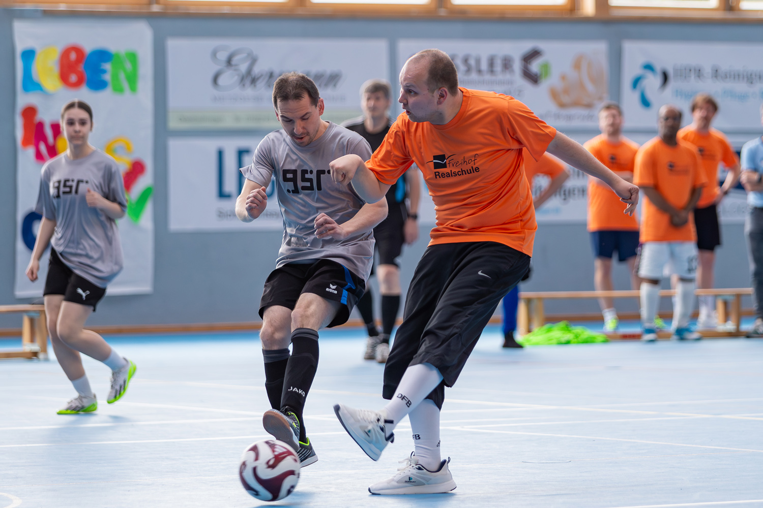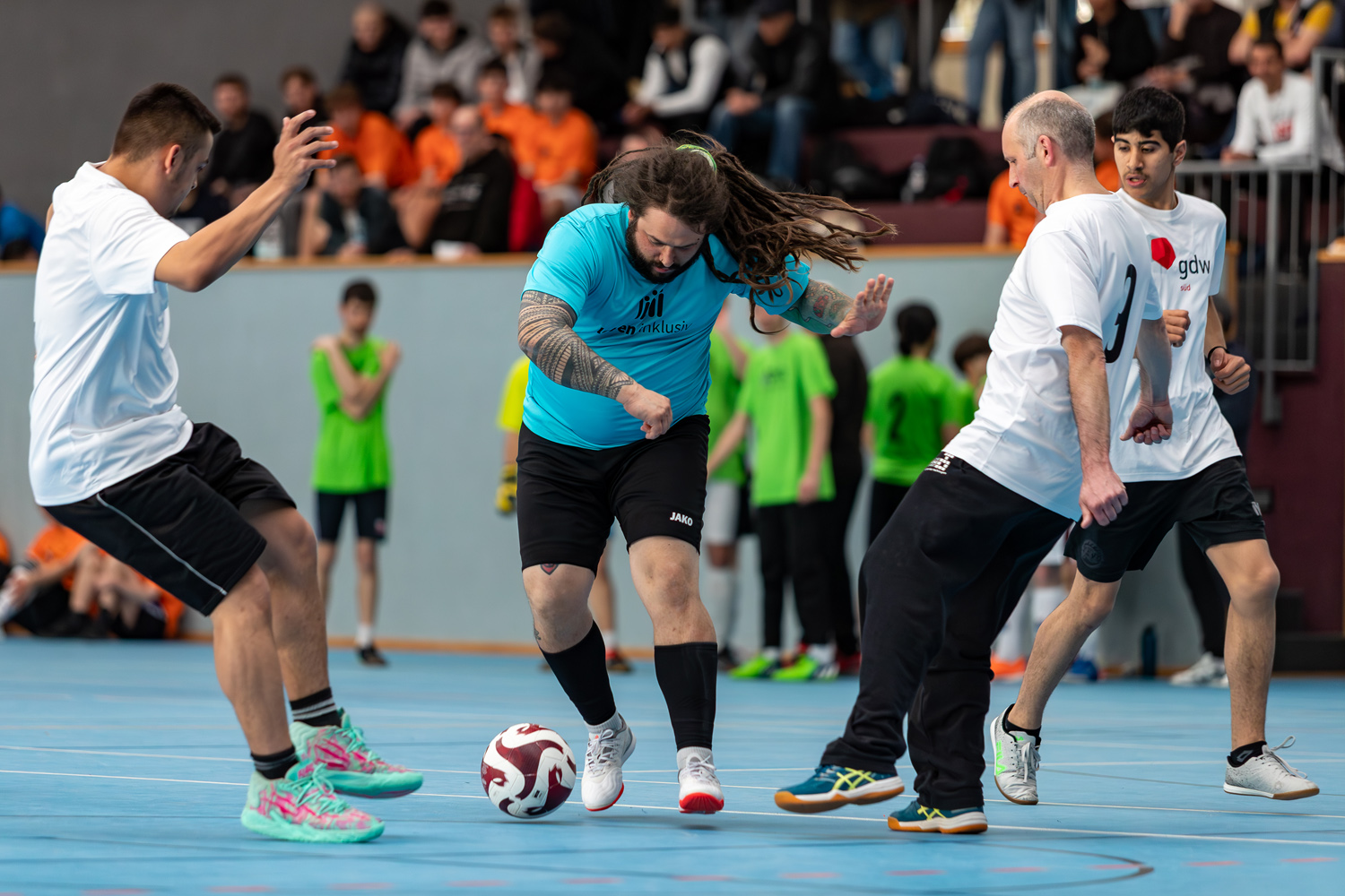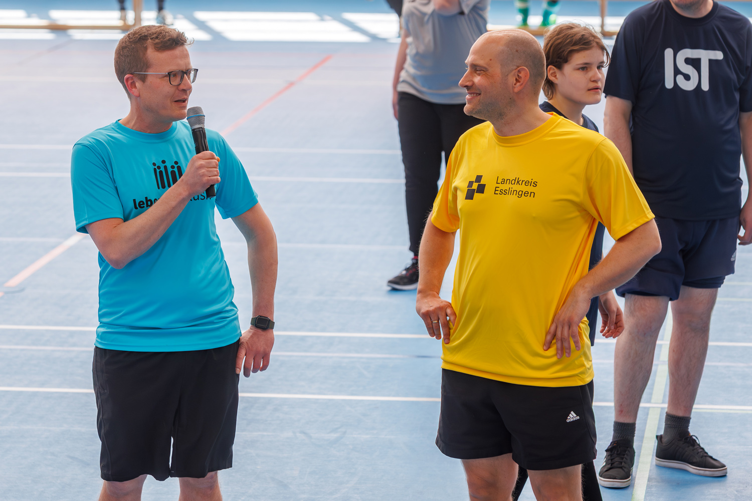 OBERBOIHINGEN: Zehn gemischte Teams aus Unternehmen, Schulen und sozialen Einrichtungen der Region waren gegeneinander angetreten. Menschen mit und ohne Beeinträchtigung standen dabei Seite an Seite auf dem Feld – genau das, was den besonderen Charakter des Turniers seit Jahren ausmacht. Für ein echtes Highlight gleich zu Beginn sorgte der Esslinger Landrat Marcel Musolf, der als Schirmherr selbst die Hallenschuhe schnürte und im Eröffnungsspiel für das Team des Landratsamts Esslingen auflief. „Es ist nicht selbstverständlich, dass sich ein Landrat so aktiv einbringt und mitten ins Spielgeschehen geht“, betonte Katharina Ramsperger von Leben inklusiv e.V. als Organisatorin des Turniers. „Landrat Musolf hat nicht nur Präsenz gezeigt, sondern echten Einsatz!“