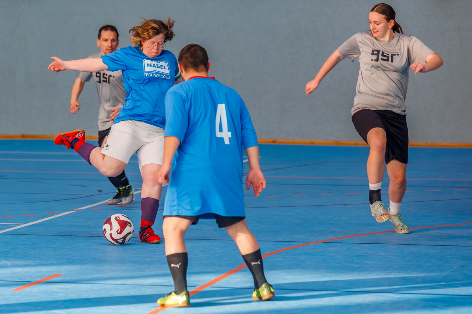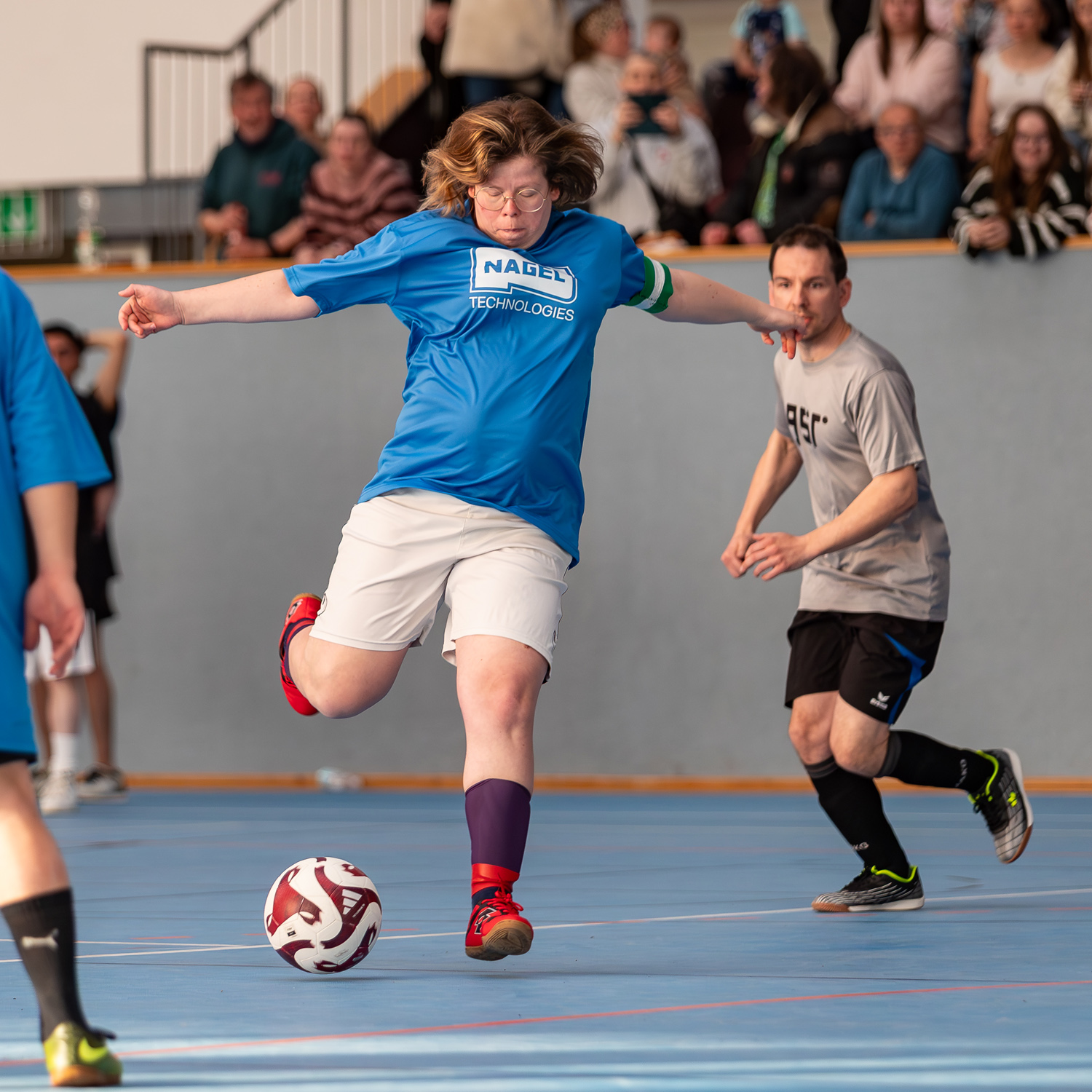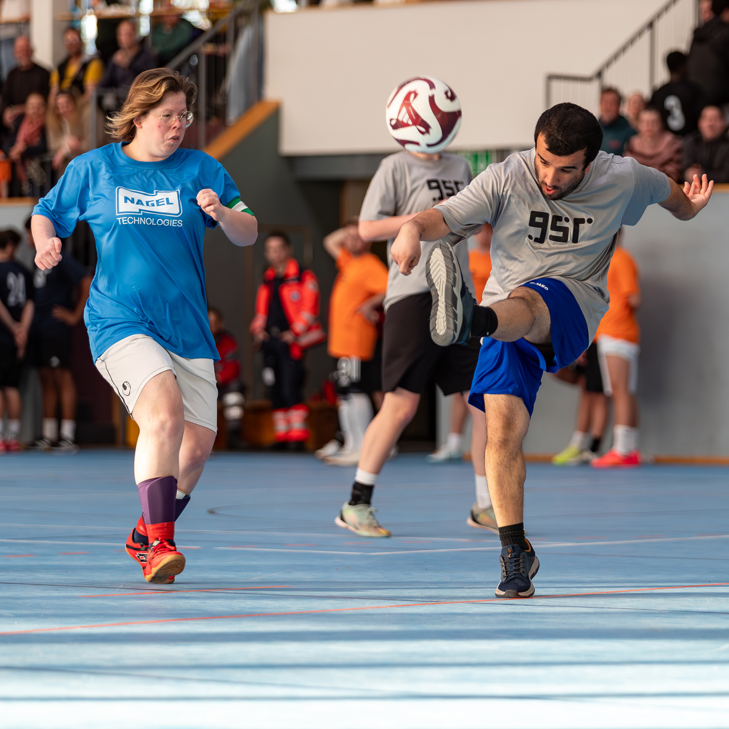 Ein kleines Jubiläum mit großer Wirkung: Zum zehnten Mal fand am 27. März 2026 unser Leben inklusiv Cup in der Ballspielhalle in Oberboihingen statt. Nach einem spannenden Finale setzte sich das Team von Nagel Technologies und der Karl-Schubert-Gemeinschaft als Sieger des inklusiven Fußballturniers durch.