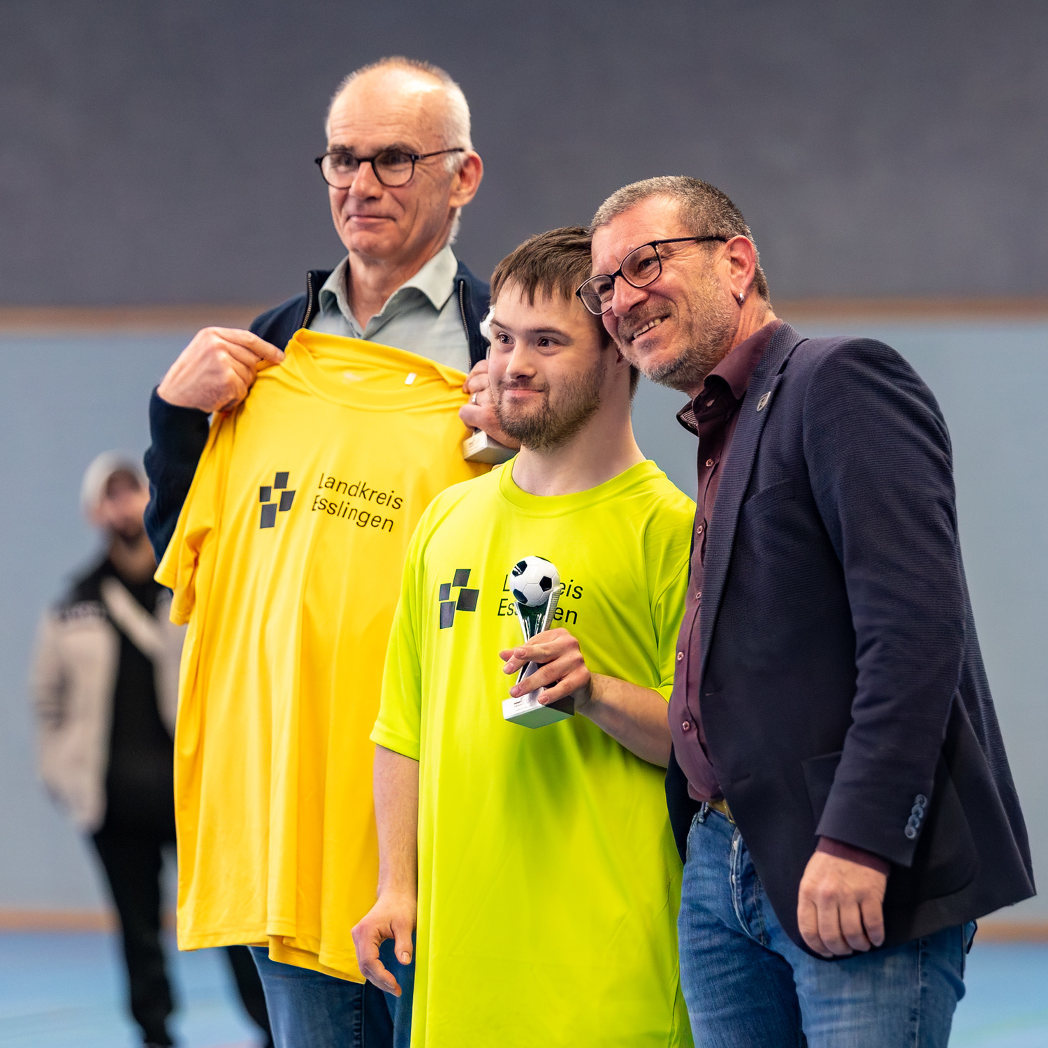 Neben Pokalen für alle teilnehmenden Mannschaften dürfen sich die drei Erstplatzierten über besondere Team-Erlebnisse freuen: Für die Sieger geht es zu einem Bundesliga-Spiel der TSG Hoffenheim gegen Mainz 05. Die Zweitplatzierten besuchen ein Handball-Bundesligaspiel des TVB Stuttgart gegen die Rhein-Neckar Löwen. Auf Platz drei wartet ein gemeinsames Essen in der Linde in Oberboihingen. Der Fair-Play-Pokal, der beim Leben inklusiv Cup traditionell eine besondere Rolle spielt, ging in diesem Jahr an das Team des Landratsamts Esslingen gemeinsam mit der Lebenshilfe Zollernalb 1. Als Anerkennung erwartet die Mannschaft ein gemeinsamer Besuch bei einem Heimspiel der Zweitliga-Handballerinnen in Nürtingen.