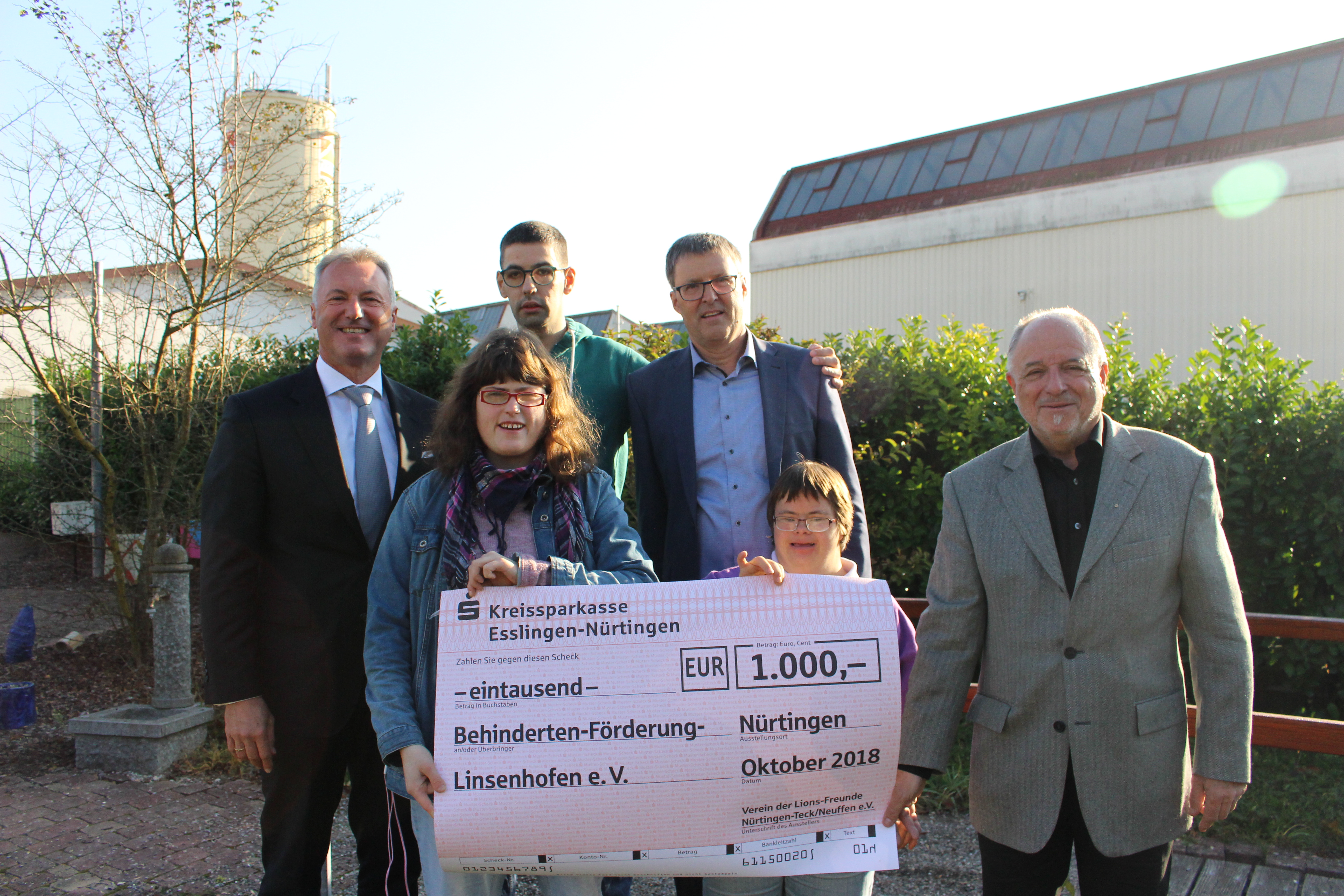 Strahlende Gesichter bei der Scheckübergabe im Sinnesgarten der Behinderten-Förderung-Linsenhofen [...]