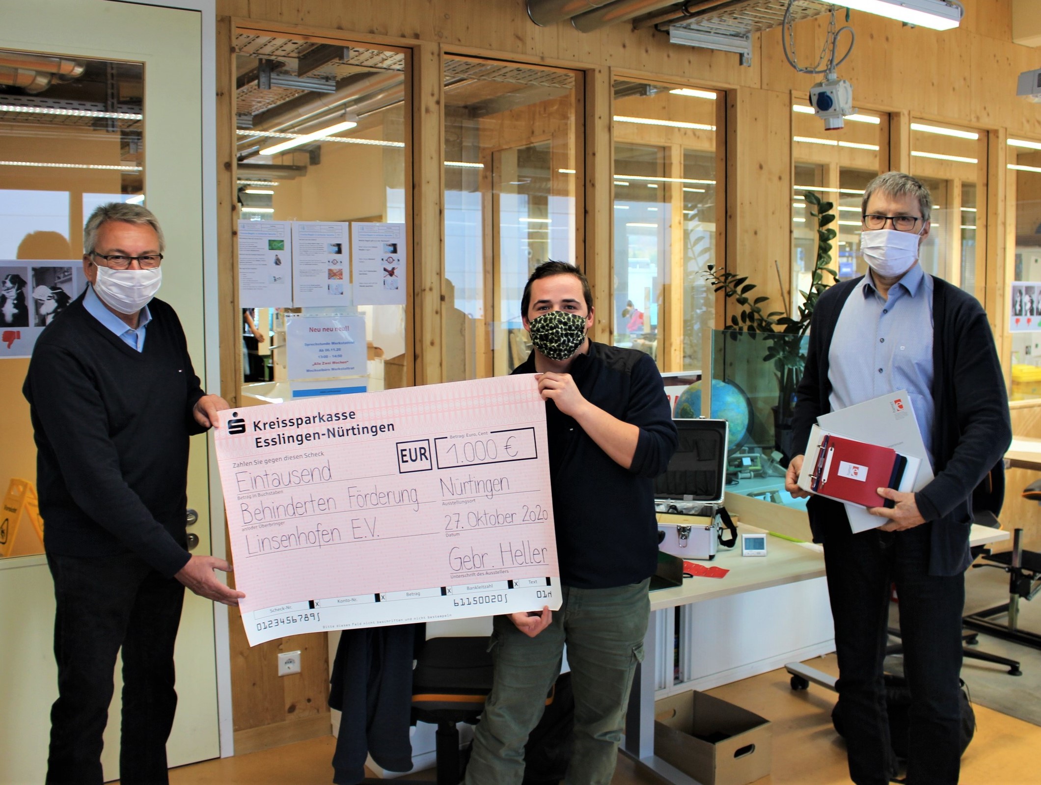 Scheckübergabe in den Räumlichkeiten des Berufsbildungsbereichs der Werkstatt in [...]