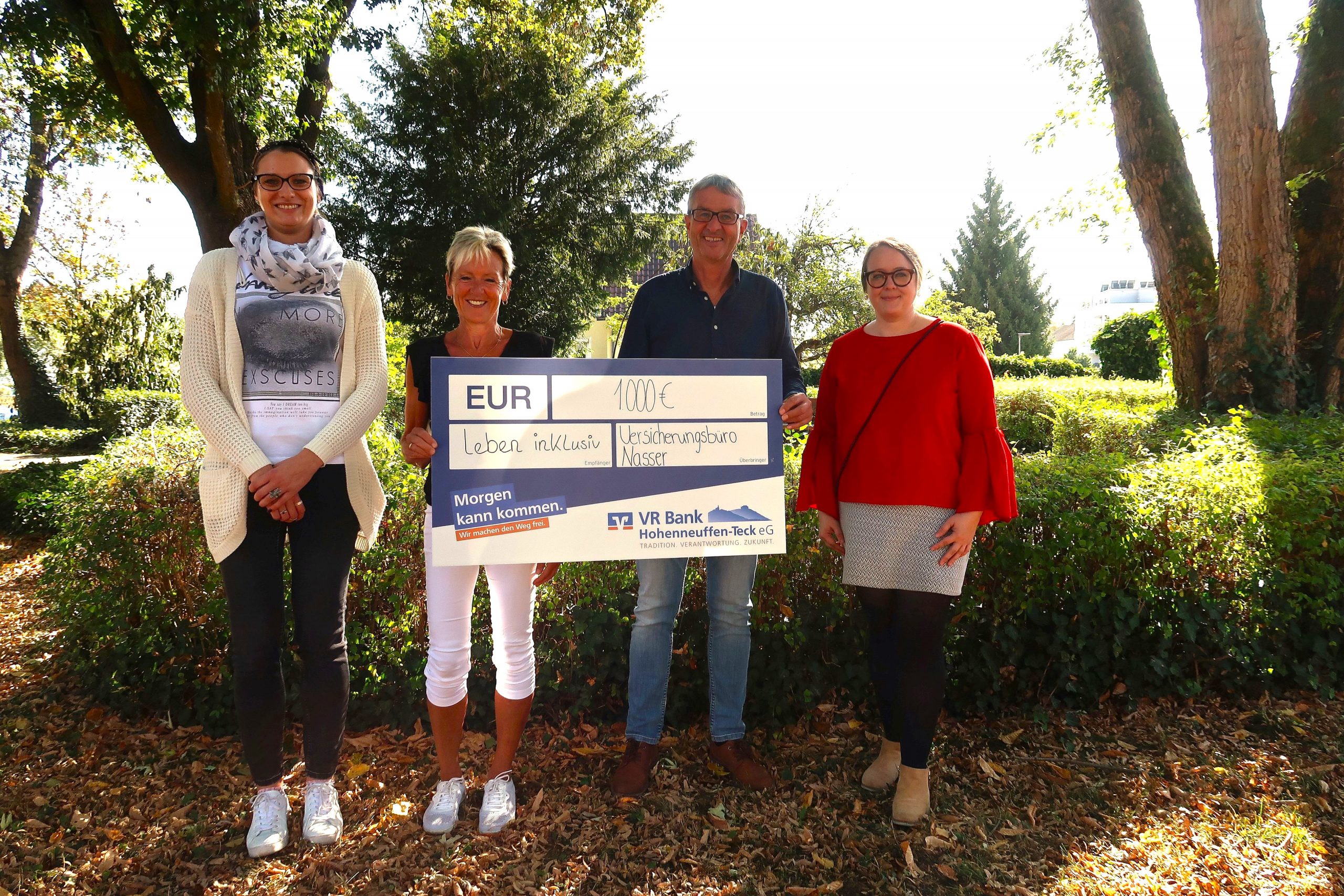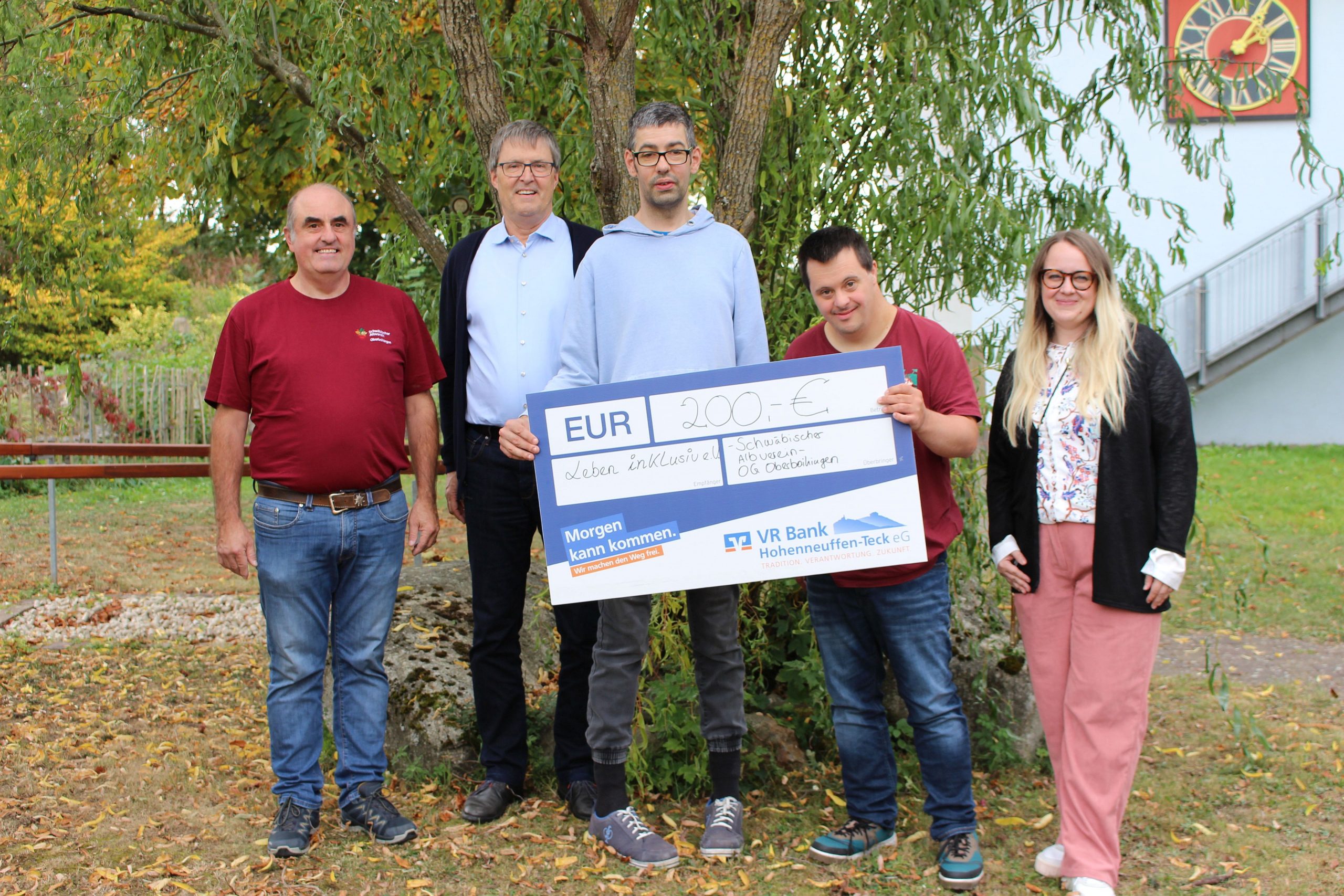 Bei der symbolischen Scheckübergabe (v.l.n.r.) Jörg Haußmann (Schwäbischer Albverein [...]