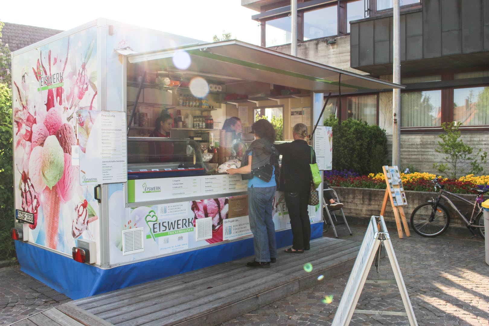 Seit August 2025 steht unser Eiswagen wieder in der neu gestalteten Ortsmitte direkt vor dem Rathaus in Frickenhausen.