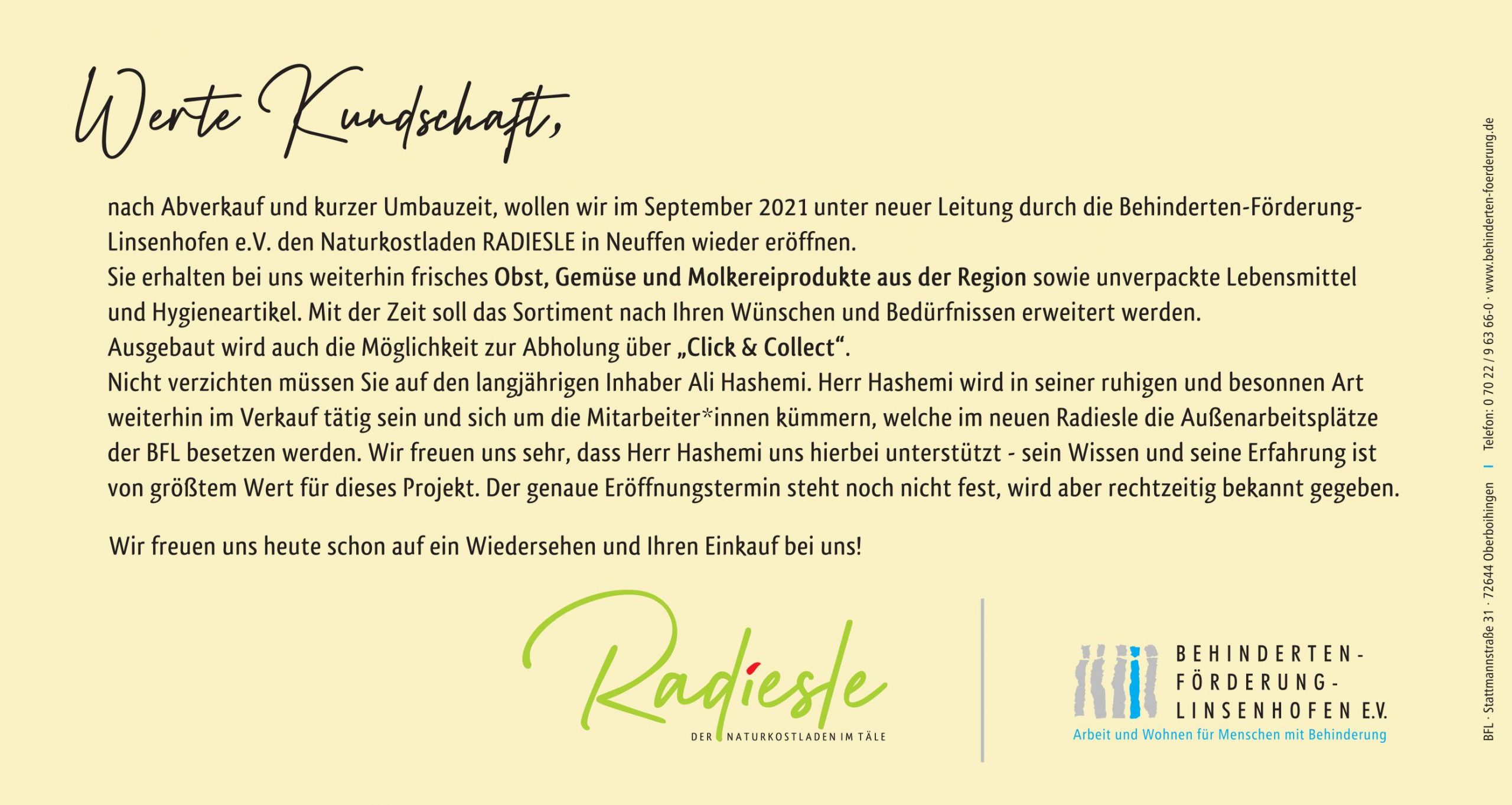 Die BFL hat den Bio-Lebensmittelmarkt „Radiesle“ im Herzen von [...]