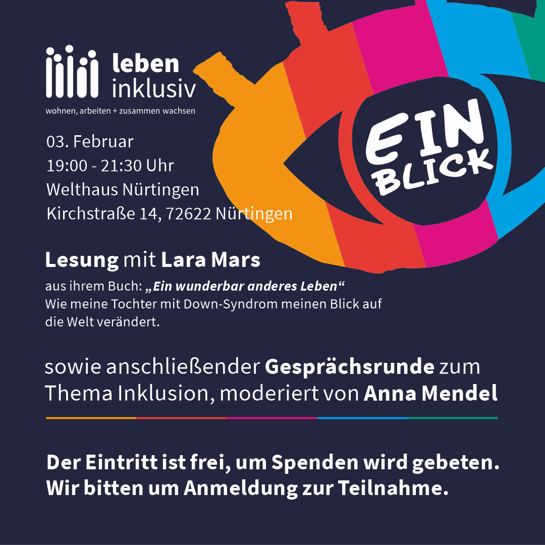 Herzlich laden wir Sie zu einer inspirierenden Lesung mit der Autorin Lara Mars ein, die Auszüge aus ihrem bewegenden Buch „Ein wunderbar anderes Leben“ präsentieren wird. Lara Mars gewährt dabei einen tiefen Einblick in ihre persönliche Reise als Mutter, die durch die Geburt ihrer Tochter mit Down-Syndrom eine einzigartige Perspektive auf das Leben entwickelte.