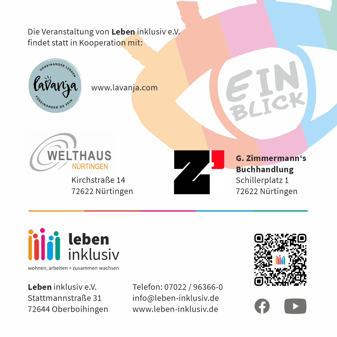 Nach der Lesung laden wir Sie herzlich zu einer Gesprächsrunde zum Thema Inklusion ein, moderiert von Anna Mendel. Die offene Diskussion bietet Raum für Fragen, Austausch und die Erörterung von Themen rund um Inklusion, Vielfalt und die Herausforderungen, aber auch die Chancen, die sich daraus ergeben.