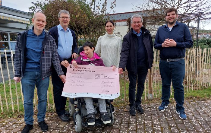 Bei der symbolischen Scheckübergabe (v.l.n.r.) Stefan Haag (Heller BigBand), Thomas Fick (Vorstand Leben inklusiv), Maike Riegler, Sanja Miladinovic (Teamleitung Förder- und Betreuungsbereich), Helmut Grübel (Heller BigBand), Dimitri Wedmann (Geschäftsbereichsleitung Arbeit, Tagesstruktur, Qualifizierung). Im März [...]