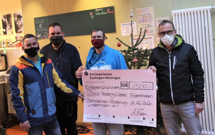 Die symbolische Scheckübergabe fand in der Mensa der WfbM in Frickenhausen statt. v.l.n.r.: Toni Sandmann (BFL), Paul-Leon Schmidt (BFL), Hagen Wannersdorfer (BFL) und Armin Baur (Geschäftsführer, Baur). Anfang Dezember erhielt die Behinderten-Förderung-Linsenhofen e.V. (BFL) [...]