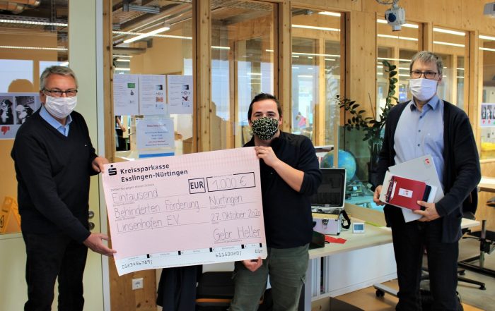 Scheckübergabe in den Räumlichkeiten des Berufsbildungsbereichs der Werkstatt in Frickenhausen.(v.l.n.r.) Helmut Grübel (Heller), Mark Alsleben (BFL) und Thomas Fick (BFL). Anfang November konnte endlich die ursprünglich für März geplante Scheckübergabe der BigBand des Nürtinger [...]