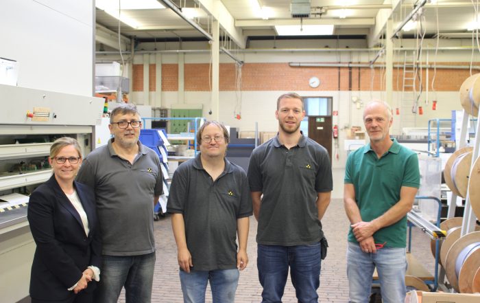 Freudenstrahlende Gesichter nach der Vertragsunterzeichnung. V.l.n.r. Julia Deharde (beck packautomten), Michael Schlattner (beck packautomaten), Jörg Flohr (Behinderten-Förderung-Linsenhofen e.V.), Christopher Wille (beck packautomaten) und Rainer Digel (Behinderten-Förderung-Linsenhofen e.V.) Die Frickenhausener Firma beck packautomaten schafft für [...]